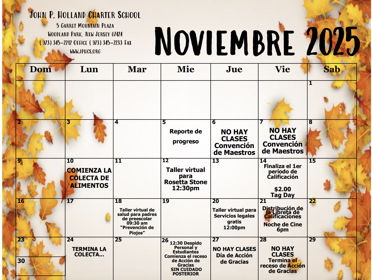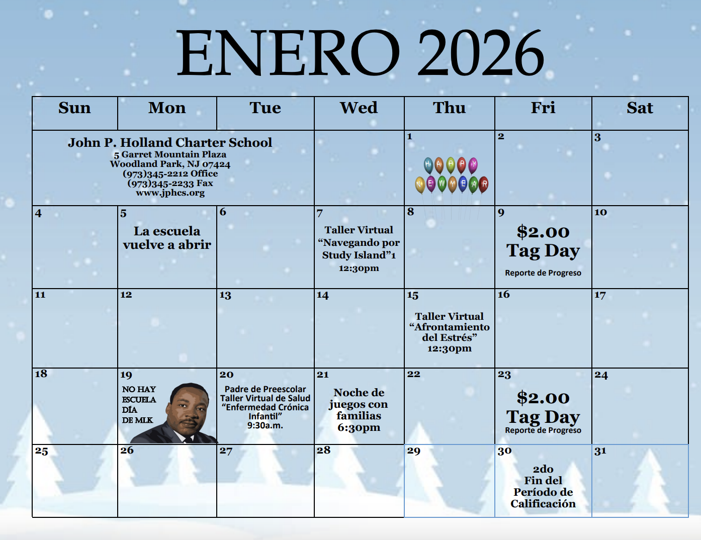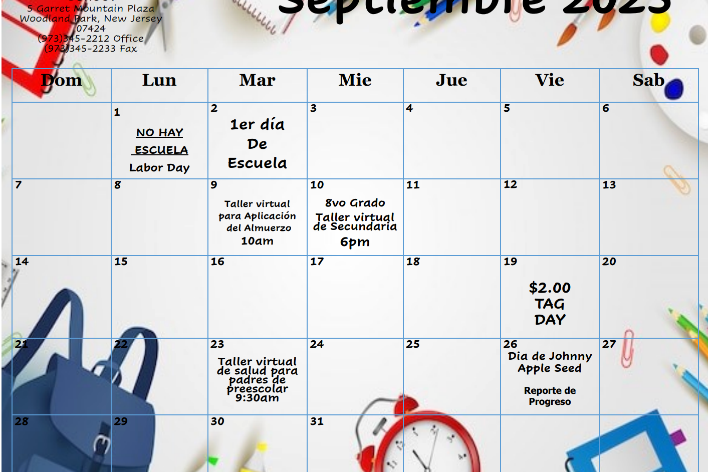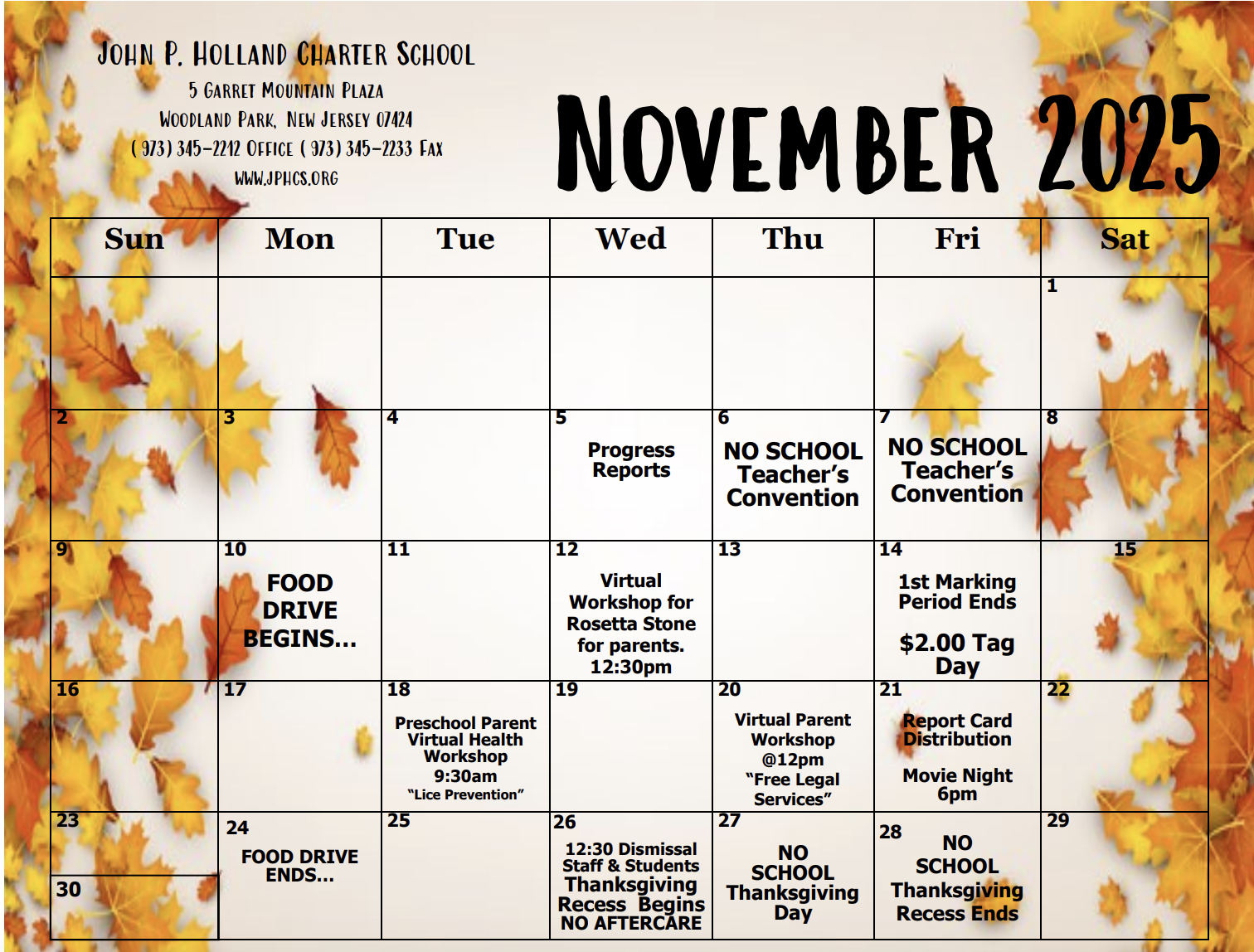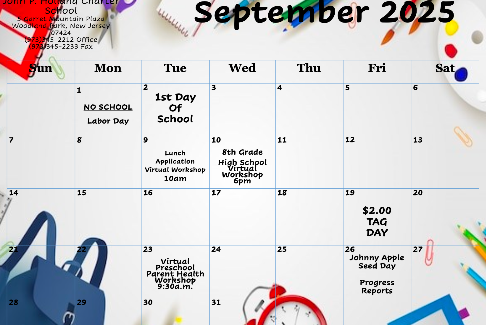 Monthly School Calendar